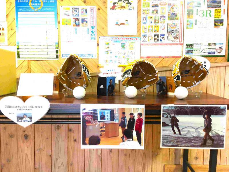 昨日子供たちに紹介し贈呈した、大谷選手からいただいたグローブを、コミュニティホールに展示しました。大谷選手からのメッセージも一緒に展示しています。子供たちも読んでいました。書初め展でご来校の際には、ぜひ一緒にご覧いただければと思います。
