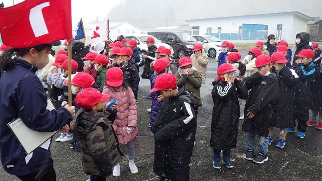 1月15日(月)、今年度4回目の避難訓練を実施しました。今回は冬場の火事を想定し、グラウンドではなく、校舎北側に避難する練習を行いました。いつもとは違う経路での避難となりましたが、悪天候の中でも全員迅速に行動することができました。最近は、地震だけでなく、火事のニュースも頻繁に流れてくるようになりました。引き続き、日常生活においても都度防災の意識を高めていきたいと思います。