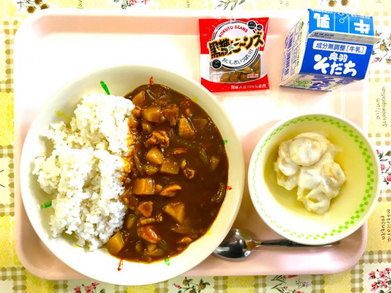 教の給食は「めざみ産デー」でした。メニューは・・・麦ごはん、チキンカレー、フルーツヨーグルト、黒糖ビーンズ、牛乳でした。今年度2回目の「ながめやまヨーグルト」です。今回はフルーツと和えられています。今日は5年生の教室におじゃましました。みんなおいしそうに食べていました。ごちそうさまでした。