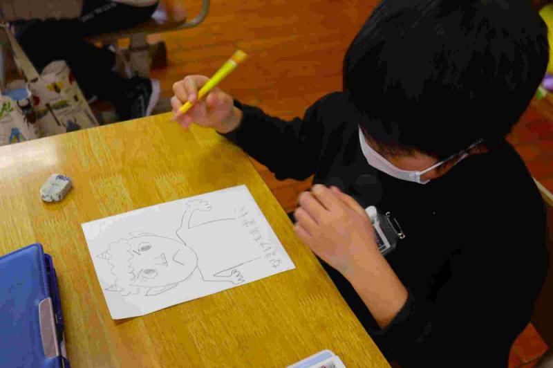 明日は節分ということで、1・2年生が豆まきをしておにを退治しました。はじめに、各自がおにの絵と退治したいおにの名前をかき、黒板に貼って豆をまきました。すると本物のおにがやってきて、子供たちはびっくり大はしゃぎで豆を投げていました。おにを退治して、子供たちはにこにこでした。日本の伝統をこれからも大切にしたいものです。