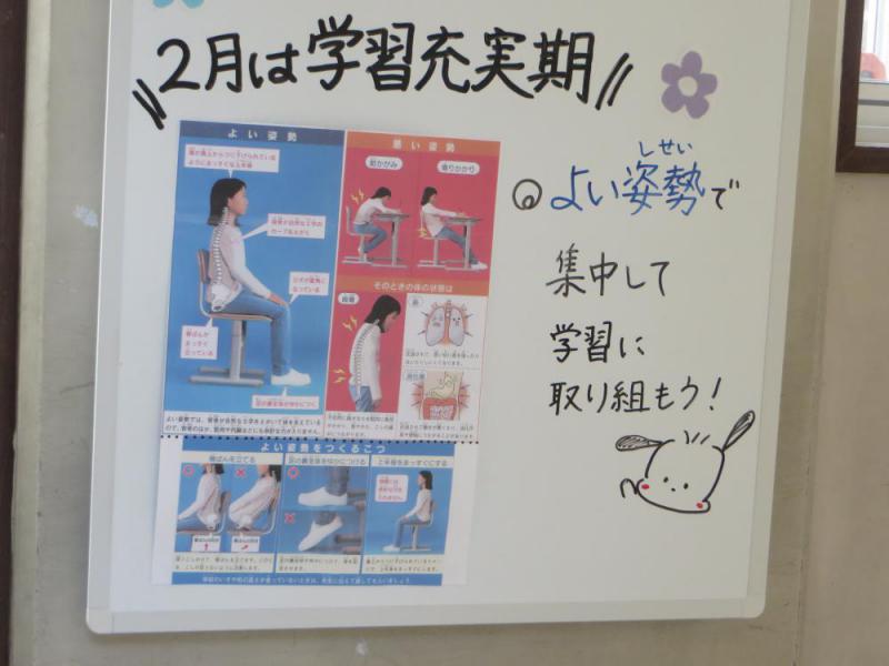 2月14日(水)、学校は今月から学習充実期間に突入しています。こちらは、2年生の算数です。粘土と長さの異なるストローを使って箱作りをしていました。立体図形の入門編ともいえます。ストローの長さや頂点の位置を確認しながら、グループごとに集中して取り組んでいました。具体的な操作活動をとおして、子供たちの図形感覚を養っています。 こちらは1年生の国語です。1年間の総まとめの時期でもありますので、級外の先生も複数入りながら、子供たちの学びを支援しています。今週から他の学年にも複数体制で学習支援に入る予定です。自信をもって次の学年に進級できるよう、全職員で子供たちをバックアップしていきます。 また、今日は図書ボランティアによる読み聞かせの日でもあったため、頭をフル回転させた後は、心にたっぷりと栄養を与えていただきました。 さらに、図書整備担当の皆様には図書室前の装飾をリニューアルしていただきました。一足先に爽やかな春の装いとなりました (*´▽`*)図書ボランティアの皆様、ありがとうございました。