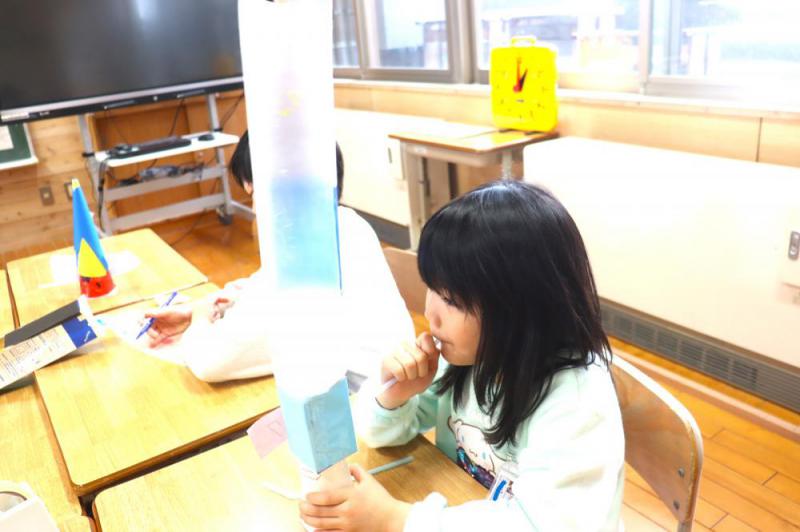 1年生が、図工の授業でとても楽しそうな発表会をしていました。細長いビニール袋にストローを付け、それを吹くとにょきにょき跳び出す工作です。それぞれのアイディアで、龍や象の鼻、花びらが舞う様子などを表現していました。中には2つのにょきにょきが飛び出すものもあって、子供たちのアイディアに驚かされました。