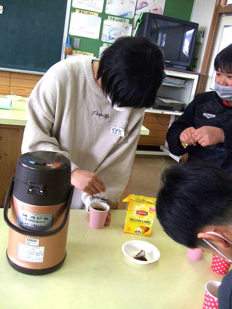 3月4日(月)、卒業式までのカウントダウンが進んでいます。6年教室前に掲示されているのは、子供たち一人一人が作成したカウントダウンカレンダーです。6年生の人数(23人)にちなんで、「登校日数ラスト23」からカウントダウンがスタートしたようです。役目を終えたカウントダウンカレンダーが日に日に増えています。そして、ちょうど今日が「ラスト10」。早いものです・・・。 先週は6年生に感謝する「6年生を送る会」を開催したところですが、今日は6年生主催の「先生方に感謝する会」が行われました。招待を受けた家庭科室に行ってみると・・・「いらっしゃいませ! どうぞ、こちらへ!」と元気に案内してくれました。おいしい飲み物と手作りのじゃがバター、そしてメッセージ入りの色紙をいただき、素敵なおもてなしを受けました。小学校の思い出や中学校への期待等、楽しいお話もたくさんしてくれました。心のこもった会を企画してくれた6年生のみなさん、ありがとう!