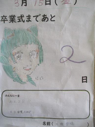 卒業式まであと2日。今日は、6年生特集です。 教室に行くと板書の順番でちょうど発表の時間。 地球温暖化が進まないように、小さなことから始めなくてはいけませんね。ちゃんと外に出て生活できる地球を守るのは、私たちです。 小学校最後の給食。この瞬間を忘れないで。 今日は、槌谷さんの連載第2弾。楽しかった夏・・・でしょうか。 春の到来をつける春1番が吹いているようです。「なごり雪」ならぬ「なごり風」・・? 17日は修了式です。