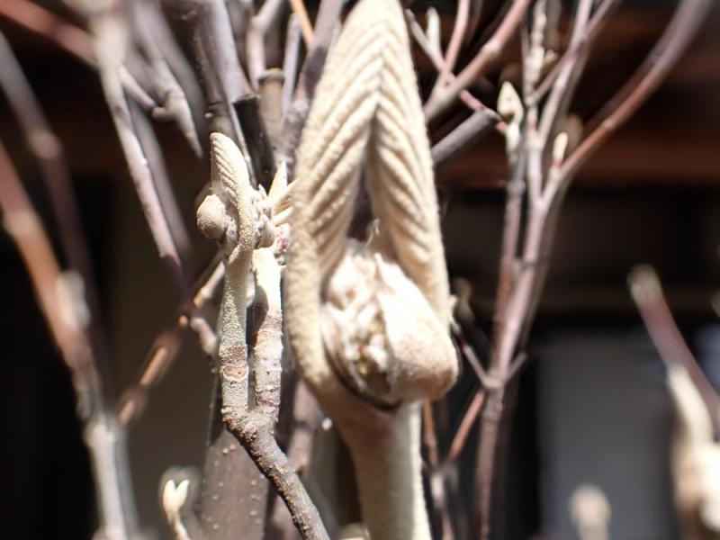 葉と要別々に冬芽を造る。葉、花芽が歴然としている。