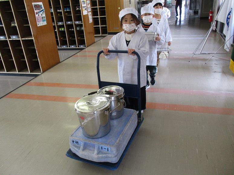 4月10日(水)、1年生の給食がスタートしました。初めての準備も友達と協力して、上手にできました。もりもり食べて、丈夫な体をつくってくださいね。