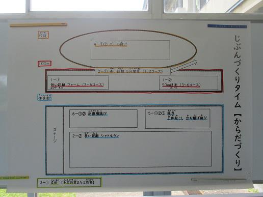 4月から計画を立ててきた自分創りタイムが始動!どのチームも、6年生が中心になって準備運動をしています。 おー、先生も走り始めましたか! まずは、走ってみるのですね。 体育館でのチームも、準備運動やランニングからですね。 6年生一人、あとは1・2年生というチームもありました。 6年生の見本を見て、いいところを見つけています。 「教師のSOS」という言葉があります。S:しゃべりたがる O:教えたがる S:仕切りたがるです。今日は、ある先生の代わりに反復横跳びに顔を出しました。口を出さないと決めていったのですが、後から振り返るとみごとに、教師のSOSそのままだと大反省しました。自分創りタイムは、自分で考えてやってみて失敗し、また次に挑戦する時間。子どもたちが困って頼ってくるまで、安全確保をして見守る、こぐわっ子たちの心と上手な綱引きをすることが必要です。子どもも大人もまだまだ試行錯誤です。