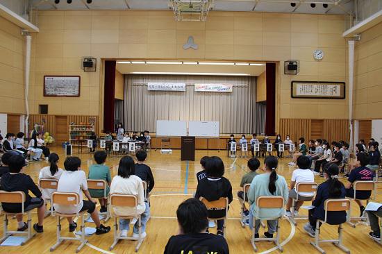 5月16日、4年生以上の一っ子が一堂に会し、児童会総会が行われました。総会では、今年度の児童会スローガンや各専門委員会の年間計画について熱心な話し合いが展開されました。特に、あいさつ運動に力を入れていくことが採択された後、事前に各学級で話し合ってきた「よりよいあいさつのためにできること」について、各学級委員が発表しました。 あいさつは望ましい人間関係を築くために、なくてはならないものです。これからますます、元気でさわやかなあいさつが響き渡る第一小になっていくことを期待しているところです。また、今回決まった様々な取組や活動が活発に行われ、さらに勢いのある学校が築かれていくことを楽しみにしています。