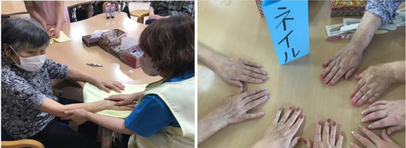 あゆみ通所の今月の行事は、『ネイル・ハンドマッサージ』を行っております。毎年恒例となっていますが、今年は、ヒーリングのBGMを流し、お香を焚いていつもの通所とは違う雰囲気の中で行いました。女性の方はもちろん、男性もネイルを塗っていかれる方もいらっしゃいました。今月の行事は、12日(水)まで行う予定です。