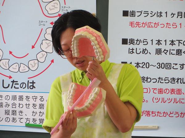 7月8日(月)、今日は県歯科衛生士会置賜支部の皆様をお招きし、全校生を対象に歯のブラッシング指導を行っていただきました。学年ごとに歯みがきの大切さや正しい磨き方、歯ブラシの選び方など、ブラッシングに関するさまざまな指導とアドバイスを頂戴しました。校舎を一巡していると、ちょうど3年生と4年生が実施していましたので、その様子をお知らせします。【3年】 【4年】 お家の方による仕上げ磨きは、永久歯が生えそろう小学生くらいまで行うのが理想とされています。子供だけでは落としきれない汚れもありますので、健やかな口腔の成長のためにも、ご協力をよろしくお願いいたします。