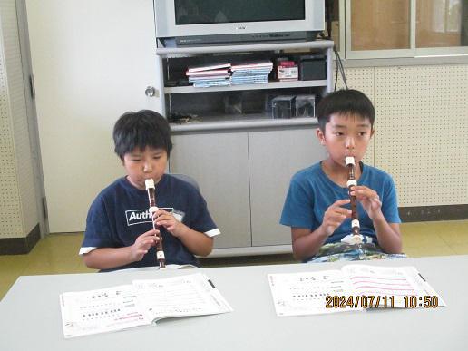 リコーダーの音が聞こえてきたので、音楽室へ行くと・・・ みんなで音合わせをしている場面に出会いました。 なんだか得した気分になりました。 「2年生教室に来てください!」校長室に、すばらしい服を着たお客様が来ました。さっそくいってみると・・・ わ〜、そこは別世界、「ユーズドゥニュースペイパーファッションショー」でした! みんなとっても誇らしげ”! おっと、兄弟対決!またまた得した気分になりました!なんだか一人で楽しむのは、もったいない場面がたくさんの日、でした。