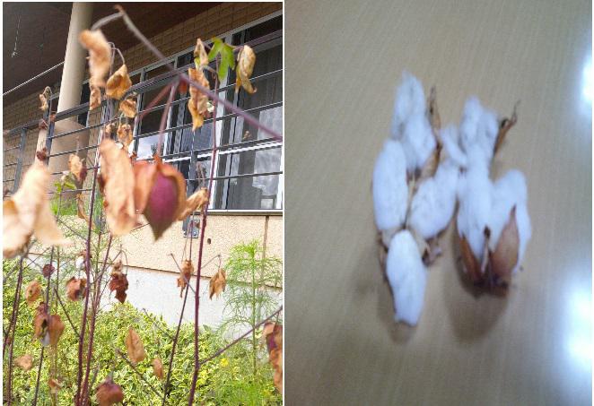 今年の春に植えた種から綿が実りました!!画像左側の実が弾けると、中から綿が出てきます。私も初めて見ましたが、綿ってこうして実るんですね〜出来た綿で、利用者様と一緒に何か作品を作っていこうと思います。作品が出来上がったらまたアップしていきます。