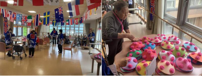 8月28日に夏祭りを行いました。たこ焼き、わたあめ、かき氷、クレープなど様々な物を食べられ喜ばれていました。レクリエーションでは輪投げやボーリング、手作りの花笠を被り皆さん夏祭りを満喫されたようです。