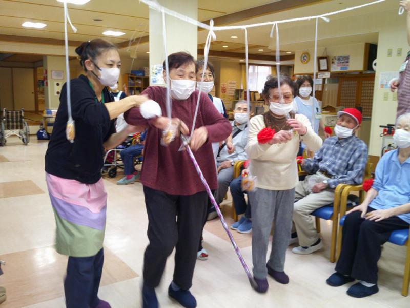 10/10・11の二日間、あゆみ通所では、運動会を行いました。今年は、赤と白のチームに分かれパン食い競争とまり入れを行いましたよ。両日共に、赤チーム・白チーム大接戦でした。特にパン食い競争では、普段シルバーカーで歩いておられる方も、シルバーカーから手を放し、夢中でパンを掴んだりと大盛り上がりでした。