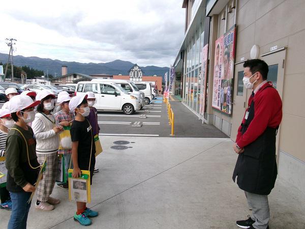 10月24日(木)、3年生の社会科見学(スーパーマーケット)を実施しました。見学先は「おーばん 白鷹店」です。見学やインタビュ―を通して、売り場のひみつや働く人の工夫等について調べていきます。 さて、今回の見学ではどんな発見があったかな?今後は調べてわかったことをもとに、みんなで報告書にまとめていく予定です。そちらの出来も楽しみにしています!ご協力いただきました、おーばん白鷹店様、ありがとうございました。