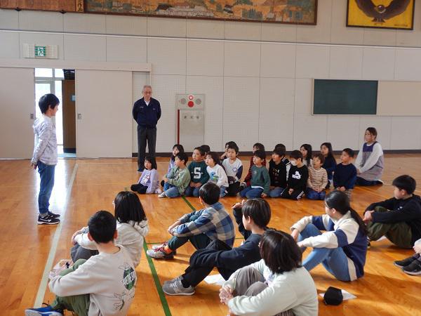 12月12日(木)、ひがしね保育園の年長児17名を迎え、交流会を行いました。7月に引き続き2回目の交流会です。前回は6年生が企画をして園児を迎えたところでしたが、今回の担当は5年生です。 前段は、ウォークラリー形式で、グループごとに校舎内に隠されたキーワード探しをしました。全部見つけると・・・園児に向けたメッセージが浮かび上がる仕掛けのようです。 後段は、体育館でゲーム(アリさんのひっこし)をしました。真ん中にいるオニのタッチをかいくぐって、自分がいるエリアから反対側のエリアに走り抜けるゲームです。 楽しい時間はあっという間です。最後はお互い名残惜しそうな様子が見られ、とても微笑ましかったです。「大丈夫?」「寒くない?」など、やさしく声を掛けながらお世話する5年生の姿が、いつもよりもさらに大人っぽく見えました。来年度はいよいよ最高学年になる5年生。頼もしい限りです!そして、元気いっぱいの「ひまわり組」のみなさん、来年の入学を楽しみに待ってます!