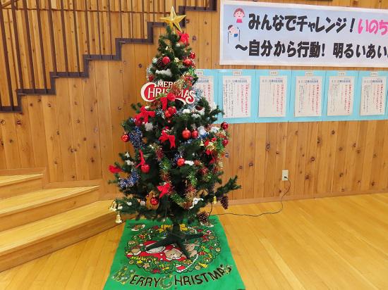 12月24日、今日はクリスマスイブです。外は真っ白な雪景色。今も白い妖精たちが舞い降りてきており、明日は、まさにホワイトクリスマスになりそうです。第一小学校の校内にも、わくわくするようなクリスマスの飾りがあちこちで見られます。子供たちや職員が準備してくれたものです。四季を感じさせるその感性の豊かさに脱帽しながら、胸躍らせているのは私だけではないと思います。一っ子達には、誰かの心がやすらぐような、みんなに楽しんでもらえるような、そのようなしぐさや行動がさりげなくできる人に育ってほしいと願っているところです。12月23日、1,2年生を対象としたクリスマス会をしました。(中間休みに行いましたので、上学年の一っ子も飛び入り参加しました!)講師に茂木栄子先生をお迎えし、「英語のクリスマス会」を楽しみました。まずは、「Santa Claus is coming to Town」という歌を教わりました。列ごとに英語の歌詞を歌い、全員で一つの曲を完成させていました。最初は難しそうでしたが、次第に慣れ、体を揺らしながら楽しそうに歌っている姿が印象的でした。そのあとは、ツリーへの飾りつけ。様々なオーナメントを思い思いの場所に飾っていました。みんなで飾りつけしたツリーは、1,2年生のはち切れんばかりの笑顔のように、キラキラと美しく輝いていました。そして最後は、頑張った1,2年生にサンタさんからの、シールのプレゼント。みんな大喜びでした。大成功のクリスマス会になりました。