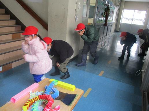 冬の避難訓練。 どのようにして、「こぐわっ子たちが」、または「こぐわっ子たちの」命を守るのか、はじめて記録をしました。 今日は給湯室からの出火という想定でした。各教室から一番近い、体育館の出入り口と渡り廊下から外へ。姿勢を低くして、ハンカチを口に当て、おかしも(「押さない」「かけない」「しゃべらない」「もどらない」)の約束で、集合場所まで。訓練なので、あらかじめ長靴を教室に置いておきました。 避難指示から、児童全員の避難は3分43秒、職員も合わせての避難は3分46秒。雪も降っていたので、各教室で、今日の避難についての放送を聴いたり、各自反省をしました。 学年ごとに、「命を守るために」指導をしましたが、放送では次のことを話しました。・冬は、夏と非常口が変わること・休み時間に火災になり、先生の指示がないとき、どこから逃げるのが良いのか常に考えておくこと・外に出るときは、上から雪などが落ちてこないか確認すること・教室にいる人は、防寒着を着て(持って)出ること  ・放送をよく聞いて避難場所を確認すること などです。 以前、長井市で夜に火災になり、2階に寝ていたお母さんと子どもさんが逃げ遅れて亡くなったという、大変痛ましいことがありました。冬は乾燥して火災が起こりやすいので、ぜひ、お子さんと、家でもしものことがあったらどうするか、(2階にいる場合どこから逃げるか、家族はどこに集まるかなど)お話ください。アメリカのロサンジェルスで、今、大規模火災が起きて、かなりの被害のようです。 「災難は、忘れたころにやってくる」の言葉もあります。「命」を大事にする行動をいたしましょう。