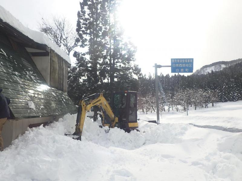 社会福祉法人白鷹町社会福祉協議会様より依頼を受け、令和7年1月31日 白鷹町山口地区の除雪が困難な世帯2件分のご自宅周辺の除雪作業を行いました。 屋根と積もった雪がつながるくらいのすごい積雪でしたが、安全第一に社員1人1人が一生懸命に作業を進め、綺麗にすることができました。住民の方からも、「大変助かりました。ありがとうございました。」と嬉しいお言葉をいただきました。 これからも地域の為に社会貢献活動に尽力していきたいと思います。  今年は昨年よりも雪が多く、除雪作業中の事故も多発しております。皆様も除雪作業の際は、十分に気を付けて行うようにして下さい。