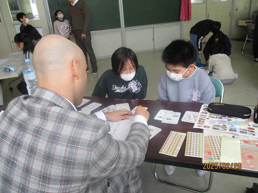 もうすっかり慣れた4年生。楽しそうに、ALTの先生が話す内容に集中し、会話中。 ちょっと忘れたら、思い出しながらまた会話を続けます。このジェスチャーは、Go straight!ALTの皆さんも笑顔!「わたし、感動しました。みんな、上手になった!」と、あとで話してくれたAさん。 いつもは中学生と接しているTさんは、とても新鮮だったようです。 会話は、お互いの気持ちが合って初めて成り立つもの。安心して会話をしているところを見ていられました。