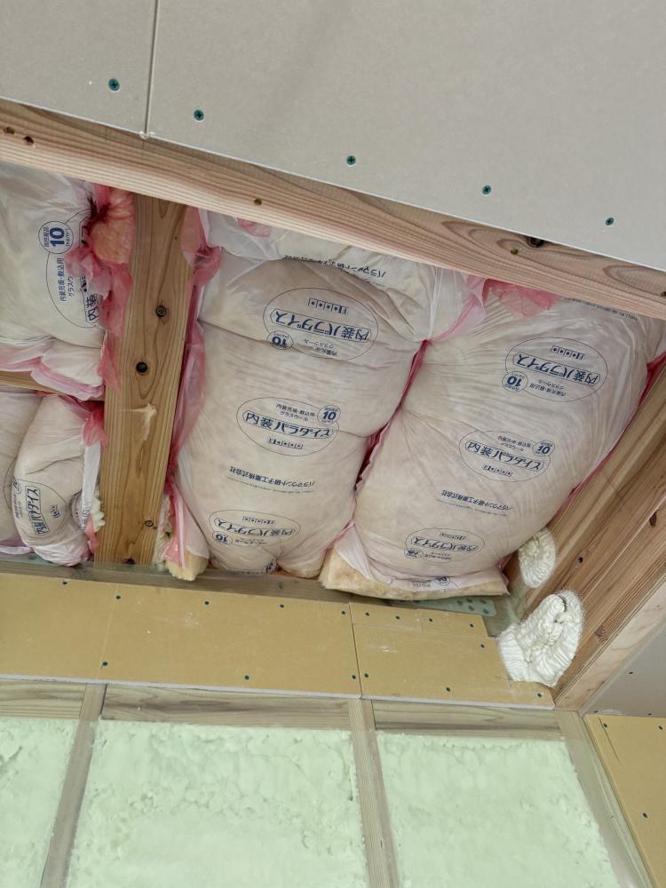 今週からまた寒さ到来で現場で働く方は風も強いため気を付けて仕事に取り組んで頂ければと思う1週間です。さて本日は、現在現場で進行中の工事で、床の遮音工事をご紹介します。建物は住宅では標準仕様として行っている2Fからの音を防ぐ工事です。グラスウールを下からタッカーで留め、音の響きを軽減する効果があります。これは15年前から取り組んでいる内容です。こちらは店舗の工事をしており、2Fの床の音をより響きにくくするために、防音マットを敷いて、更にALCパネル(コンクリートセメント板)を載せた施工をしました。2Fで運動をするということで可能な限り音漏れを防ぐために設計しました。住宅ではなかなかしない施工ですが、アパートなどでは上下両隣に気を使うため防音工事には最善に配慮を行って設計施工しております。構造用合板28oの上に遮音マット7oとALC37oそしてベニヤ板9oの上に塩ビタイル2.3oという仕上げです。遮音効果があり、仕上がりが楽しみです。