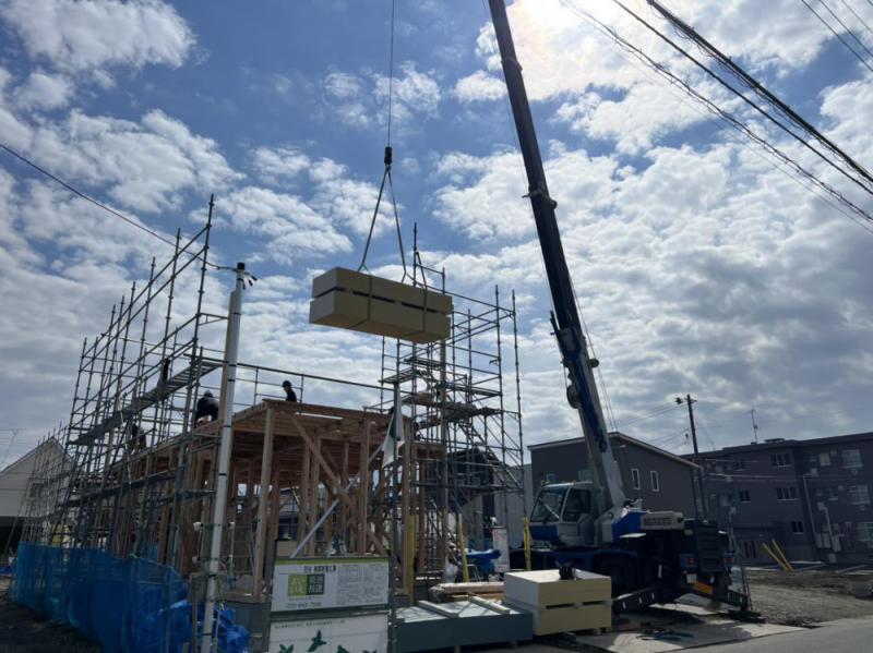 みなさんこんにちは先日建方を行いました天候もよく無事建てられることができました今後の工事では安全第一で進めて参ります