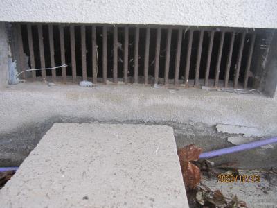 こんにちはー。松田です!「天井裏でネズミの音がする。なんとかして・・・。」と電話がありました。訪問してみると、築30年ほどの家。1ヶ所、基礎換気口の周りに物がいっぱいありました。ここからでは?!と思い、プラスチックの網を張って、様子を見ました。2日後、プラスチックの網が破られていました。今度は、金網を張ってみると、ネズミの音がしなくなった。と事。換気口周りに物があると、ネズミが入りやすくなるので、ご注意下さい。