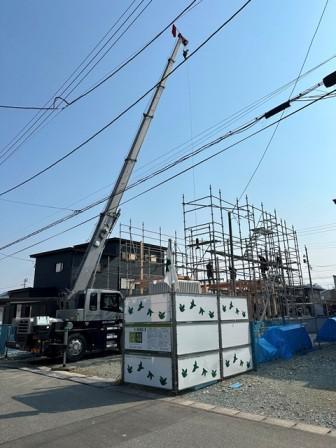 こんにちは。 基礎工事が完了し、建て方がはじまりました。天候にも恵まれ、順調に建て方が進んでいきます。 今後は4月からの法改正も影響し、着工のタイミングが読めないところがありますが、着工している現場は、引き続き安全第一で進めてまいります。 by-j.saito