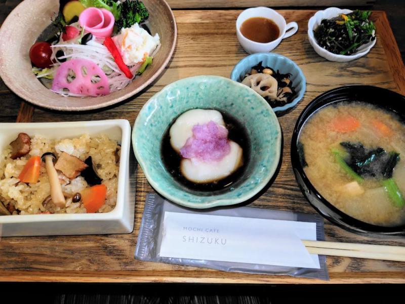 以前、郡山市に、行った時に【しづくカフェ】というほぼ女性のみが来店するであろう素敵なカフェに再び行ってみました。平日といえど次から次へと来店し満車です。ここのLunchのウリは、お餅や、おこわを提供します。私は両方 おこわとお餅のセットのLunch…運ばれてくると彩り良く、気分が上る内容です。山形にも素敵な、Lunchメニュー出すとこあればいいのに…残念ながら…なかなか みつからないしなかなか 無い…山形市南館2の1の8心と身体のリラクゼーション眠れる森023‐646−8633