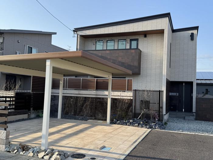 最近は急に暖かくなってきて、温かさと共に服の入れ替えも必要だなと感じているこの頃です。 先週に引き続きますが、建物の方は常に関心を持って目が行きますが、今回は外構工事でどのように引き立てるか興味があり、掲載してみました。 上記の外構は目隠しアルミフェンスをしており、御影石のような擁壁の上に設置していました。また格子の門柱のようなデザインと目の前に石を設置して高低差のある外構に仕上げているなと興味を持ちました。 こちらの画像は門柱と門扉を設置して、アプローチの穴あき化粧ブロックが印象に残りました。植栽が後ろに移っていますが、芽がつくとオシャレな雰囲気になるように思いました。 こちらは背の高いアルミフェンスで目隠しをしているようです。完全にシャットアウトしていないため効果としては見た目の印象が良くなる点かなと感じた所です。私の外構も少し予算化して魅力的な外構をご提案できるようにしたいなと感じている所です。