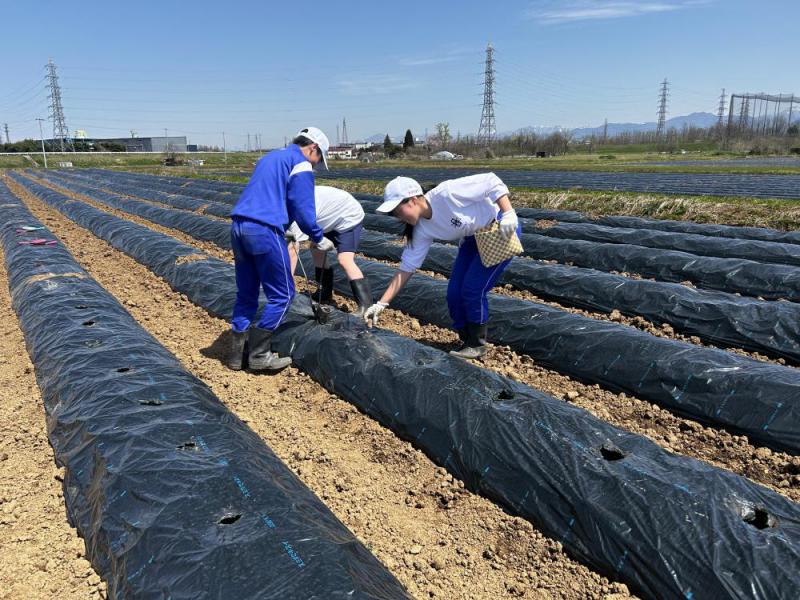 おはようございます。あじさい営農組合です!あっという間に4月が終わり、本日から5月が始まりますね!皆様、いかがお過ごしでしょうか?4月は雨の日も多く、農作業も予定通りに進めることが出来ない日もありましたが、あじさい営農組合では、職員&作業員が力を合わせ各作物ごと作業を進めているところです。先日、農作業体験として第八中学校2学年の皆様と悪戸芋の定植作業を行いました!3人1チームとなり、手際よく定植作業を行う子供たち☆1列約100mある長さを定植に使用する種芋がなくなれば、圃場内を小走りで移動したり、作業が早く終わったチームがあれば、終わっていないチームの作業を手伝う姿がみられました。農作業体験が終了しても元気で笑顔な子供たち!子供の力は恐るべし!私たちがたくさんのパワーを頂きました☆秋の収穫時期が楽しみですね(^^)/5月は農作業体験として生徒の皆さんと田植え作業を行います!また皆さんにお会いできる日を楽しみにしていますね(^^)/
