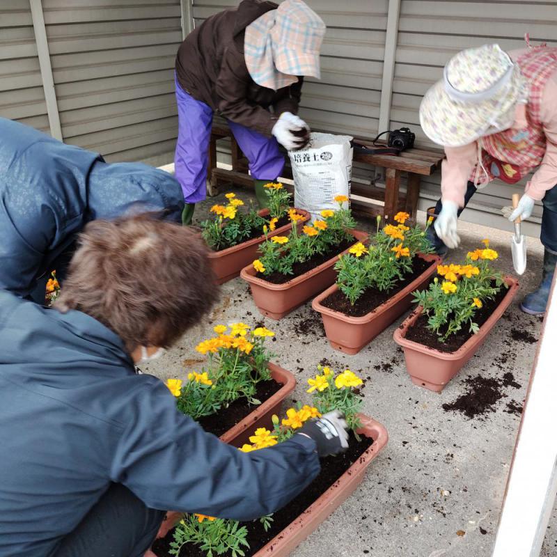 強風のなか、本日中川地区衛生組合の皆様とこぶし荘様のご協力により、花いっぱい運動として川樋交差点の花壇と各地区に設置するプランターへの植栽を行いました。前日には、雨のなか衛生組合役員の皆様によってマルチかけと看板の設置にご協力いただき、当日はボランティアとしてご参加いただいた方もいて大変助かりました。(事務局の段取り、準備不足でご迷惑をおかけして申し訳ございませんでした(T-T))荒天のなか早朝からの作業にご協力いただきましてありがとうございました!これから秋まで、色とりどりのお花たちが皆様の目を楽しませ、心を癒し、生活に彩りを与えてくれることでしょう(*^-^*)