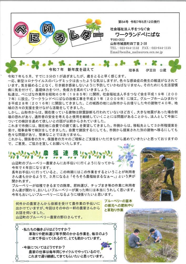 「ワークランドべにばな」の機関誌「べにいろレター」が発行になりました。是非、お読みください。