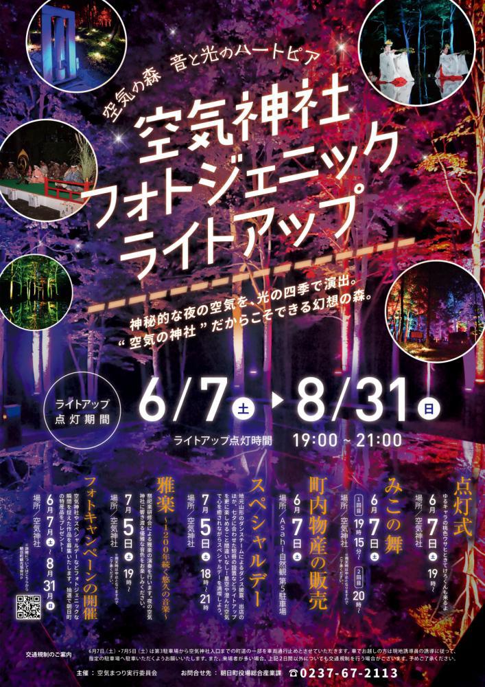 【空気神社ライトアップ2025】朝日町の幻想的な夜を満喫!日程・イベント・FAQ body { font-family: 'M PLUS Rounded 1c', sans-serif; background-color: #f4f6f9 !important; color: #333; font-size: 16px; line-height: 1.8; margin: 0; padding: 0; } a { color: #003366; text-decoration: none; } a:hover { text-decoration: underline; } .section-fade { opacity: 0; transform: translateY(20px); transition: opacity 0.8s ease-out, transform 0.8s ease-out; } .section-fade.visible { opacity: 1; transform: translateY(0); } { "@context": "https://schema.org", "@graph": [ { "@type": "Event", "name": "空気神社フォトジェニックライトアップ 2025『空気の森 音と光のハートピア』", "startDate": "2025-06-07T19:00:00+09:00", "endDate": "2025-08-31T21:00:00+09:00", "eventStatus": "https://schema.org/EventScheduled", "isAccessibleForFree": true, "description": "山形県朝日町の空気神社で、夜の森が光の四季によって美しく照らし出される幻想的なライトアップイベント。", "image": [ "https://ssl.samidare.jp/~lavo/yamagatakouiki/box/IMG_3632.jpeg", "https://ssl.samidare.jp/~lavo/yamagatakouiki/box/IMG_2099.jpeg", "https://ssl.samidare.jp/~lavo/yamagatakouiki/box/IMG_2120%282%29.jpeg" ], "organizer": { "@type": "Organization", "name": "朝日町観光協会", "url": "https://asahimachi-kanko.jp/" }, "location": { "@type": "Place", "name": "空気神社", "address": { "@type": "PostalAddress", "addressLocality": "朝日町", "addressRegion": "山形県" } }, "subEvent": { "@type": "Event", "name": "スペシャルデー", "description": "雅楽の演奏、ダンスパフォーマンス、出店、七夕短冊などでライトアップをさらに楽しめる特別な一日です。", "startDate": "2025-07-05T19:00:00+09:00", "endDate": "2025-07-05T21:00:00+09:00", "location": { "@type": "Place", "name": "空気神社" }, "organizer": { "@type": "Organization", "name": "朝日町観光協会" }, "performer": [ { "@type": "PerformingGroup", "name": "祭祀楽研修会" }, { "@type": "PerformingGroup", "name": "地元ダンスチーム" } ] } }, { "@type": "FAQPage", "mainEntity": [ { "@type": "Question", "name": "駐車場はありますか?", "acceptedAnswer": { "@type": "Answer", "text": "はい、空気神社周辺に無料駐車場がございます。ただし、特にスペシャルデーなどの混雑時は満車になる可能性がありますので、お時間に余裕をもってお越しいただくか、乗り合わせでのご来場にご協力ください。" } }, { "@type": "Question", "name": "雨が降った場合、ライトアップは中止になりますか?", "acceptedAnswer": { "@type": "Answer", "text": "ライトアップは小雨決行です。ただし、荒天の場合は安全を考慮して中止となる可能性があります。スペシャルデーの雅楽演奏など、屋外のイベントは雨天中止となる場合があります。" } }, { "@type": "Question", "name": "来場時に必要な持ち物はありますか?", "acceptedAnswer": { "@type": "Answer", "text": "会場は自然の森の中ですので、足元が暗く、夜は冷え込むことがあります。安全のため「懐中電灯」「歩きやすい靴」「上着」のご持参を強くおすすめします。" } } ] } ] } document.addEventListener("DOMContentLoaded", () => { const sections = document.querySelectorAll(".section-fade"); const observer = new IntersectionObserver( entries => { entries.forEach(entry => { if (entry.isIntersecting) { entry.target.classList.add("visible"); observer.unobserve(entry.target); } }); }, { threshold: 0.1 } ); sections.forEach(section => { observer.observe(section); }); }); 空気神社フォトジェニックライトアップ 空気の森 音と光のハートピア 夜の空気神社が、光の四季によって美しく照らし出され、幻想的な森へと姿を変えます。今年はライトの数や演出が大幅にバージョンアップ。他では決して味わえない、特別な空間が皆様をお待ちしております。 目次 イベント基本情報 7月5日(土)はスペシャルデー! Instagramフォトキャンペーン ご来場にあたってのお願い 空気神社とは? よくある質問 (FAQ) イベント基本情報 点灯期間:令和7年6月7日(土)〜8月31日(日) 点灯時間:19:00〜21:00 会 場:空気神社(山形県西村山郡朝日町) 7月5日(土)は、スペシャルデー! 7月5日(土)は、ライトアップをさらに楽しめるスペシャルデーとして開催予定です。地元山形のダンスチームによるパフォーマンスや、出店、七夕に合わせた短冊の設置など、盛りだくさんの内容でお届けします。また、19時には祭祀楽研修会による雅楽の演奏も行われます。夜の空気神社に響き渡る優雅な音色をお楽しみください。※雅楽の演奏は雨天の場合、中止となります。 スペシャルデー出店者一覧(予定) ロイフェンダチョウフランク、フランクフルト、ハムステーキ 朝日町総合産業開発玉こん、かき氷、雑貨 KaRa KaRa飲み物(ソフトドリンク・アルコール)、からあげ棒、玉こん、カレー、ルーローハン 近江屋ウサヒグッズ、光るおもちゃ、当てくじ 幸作りんご園リンゴジュース、リンゴゼリー、リンゴジャム、リンゴチップス、牛串 Instagramフォトキャンペーン 期間限定の光に包まれた空気神社で、Instagramフォトキャンペーンを開催します!美しいライトアップの写真を撮って、キャンペーンに参加しませんか?抽選で素敵なギフトをプレゼント! 応募期間:2025年6月7日(土)〜8月31日(日) 応募方法: アカウントを公開設定にして、朝日町観光協会の公式Instagramをフォロー。 ライトアップ期