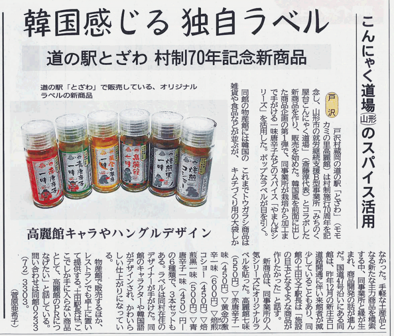韓国感じる 独自ラベル道の駅とざわ 村制70年記念新商品