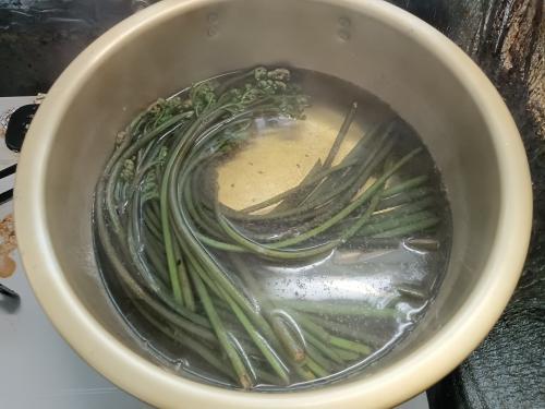今年はコシアブラ、タラの芽、フキノトウ、アケビの新芽、こごみ採りしましたが、ことしもウド採り行ってないなー、行こうと思って、自給自足人間に声かけたら、終わってるそうであった・・まだフキにミズナがある、そういえば久しくゼンマイ採り行ってないな・・蕨がシーズンだけど行かなくても、山友、従妹からチョコチョコお裾分けで頂く・・昨日蕨もらったんであく抜き中・・