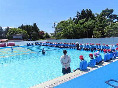 今シーズンの水泳授業がスタートしました。本校は着衣水泳からのスタートです。命を守る学習を基盤にした水泳授業。服を着て泳ぐことの困難さや、「浮く」ことの練習を中心に行いました。シーズンのスタートに着衣水泳できる環境にある飯豊町の小学生は幸せです。一般的にプールが汚れるからという理由で、プール最終に行わざるを得ない地区が多いようです。 6月中旬といえば、まだ肌寒く、気温と水温が水泳授業に適さないことがあるのですが、今日はとても暖かく(暑く)、水泳日和になりました。