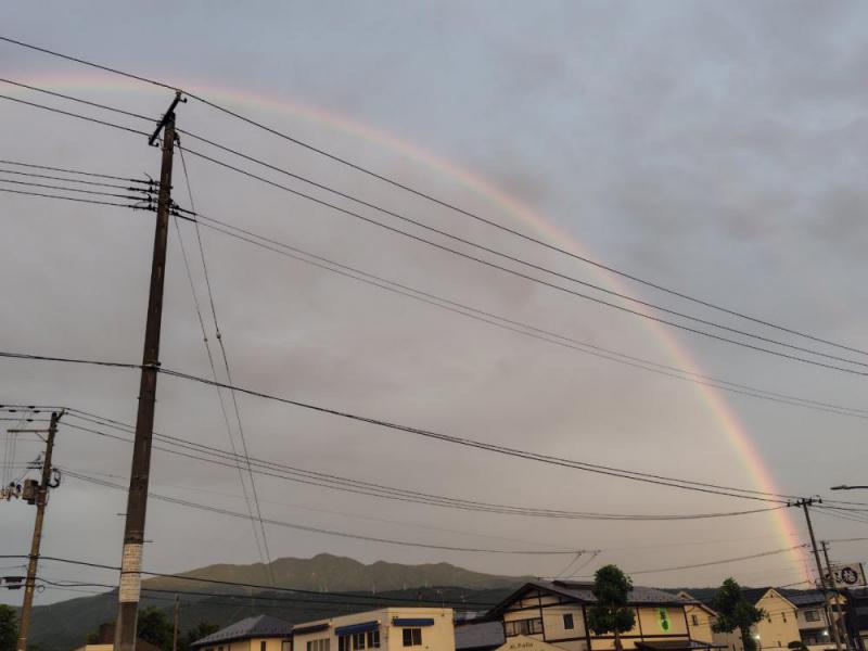 雨が降って晴れれば必ず虹が、見えるわけではなく様々な現象の重なり合いがあり初めて虹を見ることができます…月曜の夕方から夜にかけて雨上がりの後には、今日を惜しむかのようにひたすら輝きながら太陽が西側に沈んでいく頃東の山並みには大きな、円を描きながら幸せの虹が見えていました… 切れ目が全くない、弧を描く虹を久しぶりに目にしました。綺麗な虹を思わずカメラにおさめましたが 虹が大きすぎて一部しか写すことが出来ませんでした。七色に光り輝く虹…その虹もわずかな時間で消え去って行きます。時間は確実に進む…けして止まらないのだから…やりたいことをやるべきです!山形市南館2の1の8心と身体のリラクゼーション眠れる森023‐646−8633