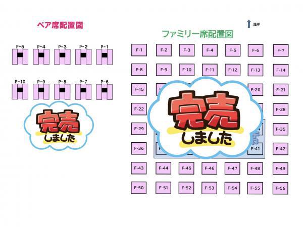 .。.:*・゜+.。.:*・゜+.。.:*・゜+.。.:*・゜+.。.:*・゜+.。.:*・゜+.。.:*・゜+最上川花火大会の有料席の販売のお知らせファミリー席(4人/テーブル・イス) ¥4,000ペア席(2人/ビニールベッド仕様) ¥3,000 受付開始日:7月15日(火)〜平日9:00〜17:00まで(ご予約は平日のみしかお受けできません、ご注意ください) お問い合わせ先:長井市観光協会 TEL/0238-88-5279 ファミリー席完売・ペア席完売となっております。.。.:*・゜+.。.:*・゜+.。.:*・゜+.。.:*・゜+.。.:*・゜+.。.:*・゜+.。.:*・゜+ ペア席…10席ファミリー席…56席※ファミリー席56席のうち10席は花火大会の大抽選会の賞品となります※ ☆.。.:*・°☆.。.:*・°☆.。.:*・°☆☆.。.:*・°☆.。.:*・°☆.。.:*・°☆ 席の空き状況に関しましては随時SNS(ストーリー)で更新いたしますので、お電話の際には是非ご確認ください。【長井市観光協会 公式アカウント】FacebookInstagram ☆.。.:*・°☆.。.:*・°☆.。.:*・°☆☆.。.:*・°☆.。.:*・°☆.。.:*・°☆