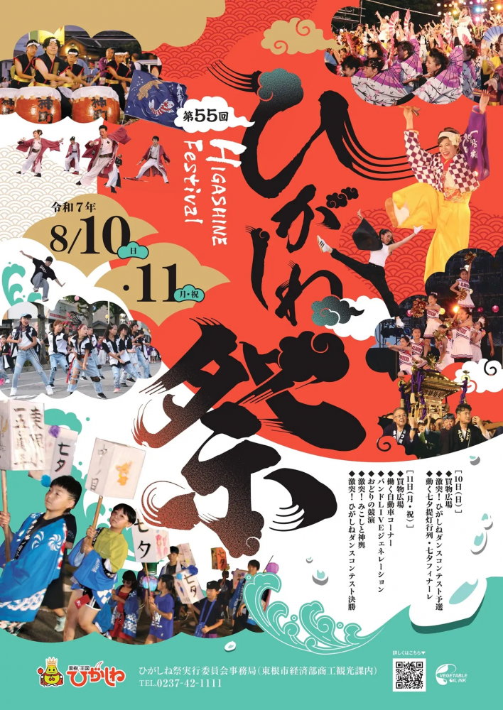 【第55回ひがしね祭 2025】東根の夏を彩る!熱気と感動の2日間を徹底ガイド2025年8月10日・11日の2日間、東根市の夏を熱くする「第55回ひがしね祭」が開催されます。伝統の七夕提灯行列から情熱的なおどりの競演まで、見どころ満載のイベントを徹底ガイドします!東根の夏、いちばん熱い2日間がやってくる! 開催概要 開催日時2025年8月10日(日)・11日(月・祝) 開催場所東根市役所 庁舎周辺 アクセスJRさくらんぼ東根駅東口より徒歩約15分 問合せひがしね祭実行委員会事務局0237-42-1111 (代表) ひがしね祭の3大見どころ!夜空を彩る幻想の光「七夕提灯行列」8/10(日) 18:30〜子どもたちが願いを込めて作った手作り提灯を手に、夏の夜道を練り歩きます。柔らかな光が連なる光景は、どこか懐かししく幻想的。子どもたちが力を合わせた大型山車も必見です!魂がぶつかり合う情熱の舞「おどりの競演」8/11(月・祝) 17:00〜市内外から集まった踊り団体による圧巻のパフォーマンス!伝統的な踊りから創作ダンスまで、様々なジャンルの演舞が3つの特設ステージで繰り広げられ、会場のボルテージは最高潮に!迫力満点!担ぎ手たちの熱き魂「激突!みこしと神輿」8/11(月・祝) 18:50〜「ワッショイ!」という威勢のいい掛け声とともに、勇壮な神輿が練り歩きます。各神輿団体がプライドをかけて担ぐ姿は迫力満点。祭りの熱気を象徴する渡御は、見る者の心も熱く揺さぶります。 まだまだある!その他のイベント買物広場2日間開催!美味しい屋台グルメでお腹も満足。8/10(日)・11(月・祝) 10:00〜21:00激突!ひがしねダンスコンテストハイレベルな戦いに注目!予選 8/10(日) 17:00〜 / 決勝 8/11(月・祝) 18:45〜働く自動車コーナー子どもたちに大人気!記念撮影も。8/11(月・祝) 10:00〜15:00バンドLIVEジェネレーション地元バンドが祭りを音楽で盛り上げる!8/11(月・祝) 11:00〜14:00 アクセスと駐車場情報指定駐車場 (無料) 市役所東側お客様駐車場 タントクルセンター駐車場 東根中部小学校 駐車場 まなびあテラス 駐車場【ご注意】当日は大変な混雑が予想されます。可能な限り公共交通機関をご利用ください。指定場所以外への駐車は絶対におやめください。 よくある質問 (FAQ) 雨が降った場合、お祭りはどうなりますか?イベントにより対応が異なります。「七夕提灯行列」は雨天順延、「働く自動車コーナー」「バンドLIVE」は雨天中止、「みこしと神輿」は雨天決行です。詳細は公式サイト等で最新情報をご確認ください。 駐車場は無料ですか?また、混雑しますか?はい、指定駐車場は無料でご利用いただけます。ただし、当日は大変な混雑が予想されますので、公共交通機関のご利用や、お早めのご来場をおすすめします。 小さな子供連れでも楽しめますか?もちろんです!子どもたちが主役の「七夕提灯行列」や「働く自動車コーナー」など、ご家族で楽しめるイベントが多数あります。買物広場の屋台も楽しめます。イベントの最新情報は公式サイトをご確認ください。ひがしね祭公式サイトはこちら{"@context":"https://schema.org","@graph":[{"@type":"Event","name":"第55回ひがしね祭","startDate":"2025-08-10T10:00:00+09:00","endDate":"2025-08-11T21:30:00+09:00","eventAttendanceMode":"https://schema.org/OfflineEventAttendanceMode","eventStatus":"https://schema.org/EventScheduled","location":{"@type":"Place","name":"東根市役所庁舎周辺","address":{"@type":"PostalAddress","streetAddress":"中央一丁目1番1号","addressLocality":"東根市","addressRegion":"山形県","postalCode":"999-3795","addressCountry":"JP"}},"image":["https://higashine-shikisai.com/assets/images/event-placeholder.jpg"],"description":"山形県東根市で毎年開催される夏祭り「ひがしね祭」。伝統的な七夕提灯行列や迫力満点のみこし渡御に加え、市民参加型のおどりの競演やダンスコンテストなど、老若男女が楽しめるイベントが盛りだくさんの2日間です。","offers":{"@type":"Offer","url":"https://higashine-shikisai.com/h-fes/","price":"0","priceCurrency":"JPY","availability":"https://schema.org/InStock","validFrom":"2025-08-10"},"organizer":{"@type":"Organization","name":"ひがしね祭実行委員会事務局","telephone":"0237-42-1111"}},{"@type":"Article","mainEntityOfPage":{"@id":"https://yamagata-kouiki.info/"},"headline":"【第55回ひがしね祭 2025】山形の夏を彩る!熱気と感動の2日間を徹底ガイド","image":"https://higashine-shikisai.com/assets/images/event-placeholder.jpg","datePublished":"2024-06-20T10:00:00+09:00","dateModified":"2025-09-17T17:00:00+09:00","author":{"@type":"Organization","name":"やまがた広域観光協議会","url":"https://yamagata-kouiki.info/"},"publisher":{"@type":"Organization","name":"やまがた広域観光協議会","logo":{"@type":"ImageObject","url":"https://yamagata-kouiki.info/images/logo.png"}}},{"@type":"FAQPage","mainEntity":[{"@type":"Question","name":"雨が降った場合、お祭りはどうなりますか?","acceptedAnswer":{"@type":"Answer","text":"イベントによって対応が異なります。「七夕提灯行列」は雨天順延、「働く自動車コーナー」「バンドLIVE」は雨天中止となります。「みこしと神輿」は雨天決行です。その他のイベントについては、当日の天候により判断される場合がありますので、公式サイトやSNSで最新情報