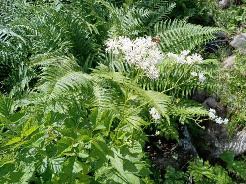 久しぶり、一昨日は天元台高原第三リフト降り場1820m(北望台)でリフト勤務・・麓が36度とかですが、この日は最高23度でした・・日差しは強く熱いですが、日陰にはいると涼しい・・この時期ここは天国です・・この場所一面に咲くモミジカラマツ・・ゲレンデにリフト下で多く咲いている・・夏を告げる花と聞いた・・この花が終わるとゲレンデ、リフト下にはヤマハハコが咲いてくる・・この花が咲くと秋・・ヤマハハコは秋を告げる花・・先週浄土平で早いのが咲いていた・・天元台も第一リフト付近で早いのが咲いていた・・山の夏は短く秋にと変わりつつあるこのモミジカラマツは北海道と本州中部以北に分布、千島列島、ウスリー地方にも見られる多年草。小さく地べたに咲くはなと違い、高さは40〜60センチ、亜高山帯および高山帯の湿った草地や林内、林縁に生育する。この葉をモミジの葉に見たてたことが和名の由来とされる