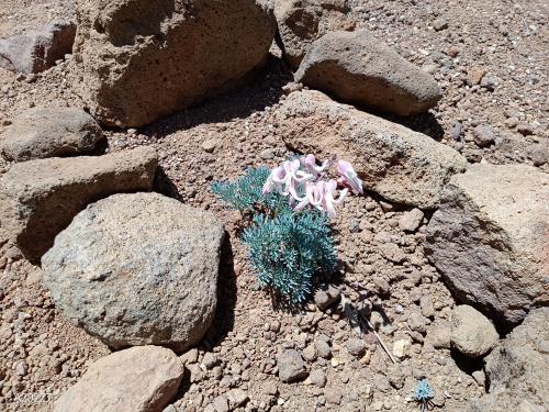 昨日、山友さんと蔵王へ登山、あついのと、コマクサをみに行く、もう遅いかなと思いつつ蔵王エコーラインで刈田リフト下の無料駐車場10時集合、1598mリフト往復900円使わずに、登山道で上のメインルート、熊野岳頂上(1841)へむかう、蔵王のコマクサは6月〜7月頃、蔵王山のお釜から熊野岳周辺、登山道の岩場に咲く小さくて可憐な花を見ることができます。 高さは数センチから15センチほどの小さな植物、その独特の色合いや形に存在感があります。 これが「高山植物の女王」とも呼ばれるコマクサです。「高山植物の女王」とも呼ばれ、ケシ科コマクサ属の多年草で、花の形が馬(駒)の顔に似ていることから「駒草(コマクサ)」と名付けられました。北海道から本州中部地方の2000m以上の高山帯に分布、岩場や砂礫地など、過酷な環境に適応して咲く植物です。地表近くに根を張って乾燥や強風に耐え、葉は細かく裂けた銀緑色で、岩場に溶け込むように広がり、他の草花との競争が苦手。周りに植物が増えると、土が肥えて他の草花が優勢になり、コマクサは少しずつ姿を消してしまうという。砂礫地にコマクサだけが咲いている