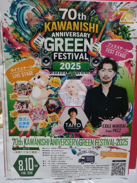 生まれ故郷の川西町は今年、町制70周年という・・昭和30年小松町、大塚村、犬川村、中郡村、玉庭村、吉島村の一町五ヵ村が合併して誕生した町、その2年後に小松で生まれた私・・御年68歳となる・・たしか50周年でも記念式典あったよな、この年の夏まつりは都会から帰省した記憶がある、70年の後は80年とすると78歳だから・・多分これがこの祭り見れるのも最後だろうね・・90周年では88歳で、もう終わってるな我が人生と思う・・自分としては70代でもう結構・・好きなことしていてぷっつりとなくなりたいのだがね・・なんて・・そんなことを感がえる歳になったね・・さてこの8月10日に、伝統文化・音楽・食・花火を軸とした「KAWANISHI GREEN FESTIVAL 〜未来へつなぐ提言〜」を開催とある町制70周年を祝い、町内外の多彩な出演者、グルメ、打上げ花火が祭りを盛り上げます!とある詳細は川西町HP参照ですね・・この日この会場のとなり”ヘアサロン ブルーム”ではブルーム駐車場で出店二つ。そしてミニライブも予定されてる・・ブルームのオーナーは音楽好きで音楽仲間にバイク仲間集まりで盛り上がるようです・・このところ新月ライブでお世話になっている・・ここはひとつ参加しなければだがね・・残念ながら仕事終わってからになるから18時過ぎ到着だけど花火にミニライブは見れるね・・出来たら数曲参加できたらね・・楽しみです
