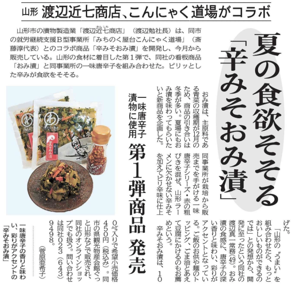 夏の食欲そそる「辛みそおみ漬」 渡辺近七商店×こんにゃく道場、第1弾の商品発売