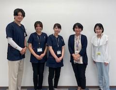 山形市の街中、山形駅西口側にありますリニエプラッツ山形。児童発達支援事業所、放課後デイサービス、保育所等訪問支援に加えて、訪問看護ステーションが7月より開設しました。オープンしたばかりの訪問看護ステーションは、看護師3名、作業療法士1名の4名体制。小児はもちろん高齢者、精神科と幅広く対応されるそうです。立地を生かして寒河江市から南陽市まで訪問可能とのことで、実際に山形市以外の利用者も多い状況だそうです。リニエプラッツは全国組織でノウハウを集約していることが強み!他県のリニエプラッツで行われた「医療的ケア児のキャンプ」では大人が寛ろぐ時間が確保されている、といったお話しもありました。当センターからは、訪問看護が園や学校で医療的ケアを担ってる事例、市町村事業での需要、18歳以降の社会資源と多くの場面で事業所の力が必要とされていることをお伝えしており、普段の関りをとおしてたくさんのニーズがあると感じていらっしゃるとのことでした。施設内は個別対応の一環で掲示物もその都度合わせて変えるためシンプルにされているそうですが、出入り口の創作はみんなの作品が一つになって海の中の大作になっていました!元気な海の生き物がとっても楽しそうですね!(医療ソーシャルワーカー)