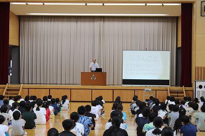 8/20 2学期のスタートです。始業式では、凡事徹底(あいさつ・時間厳守)の継続。そして新たに2学期からは「自分事」をテーマにして、学校生活を進めてほしいことを伝えました。自分事での学習  ・授業は先生がすべて教えてくれるものではない。自分から学ぶもの。・プリントやドリルなどは自分で丸付けし、間違いを修正して理解することが自分事の学習。自分事での生活  ・自分のことのように、相手を思いやりながら生活する。・学校のものは自分のもののように扱う(掃除・節約)職員・児童が共通理解し「自主的に伸びていく子どもたち」を育成していきたいと思います。2学期もどうぞよろしくお願いします。各クラスでの学級開きの様子一年生の教室 先生の言葉がとても素敵だったのですが、消えていました・・・。2年生はみんなで写真をパチリの前段3年生は宿題の点検4年生も宿題集め 自由研究などよく頑張ってきた作品もありました。5年生も宿題 不足しているところの確認とかかな。6年生は夏休みの思い出 グーグルマップを使って県などの確認わかば 先生と漢字ドリルの確認。 ひだまり 先生と宿題の確認など 自由研究がんばってきたんだね!始業式の整列・一斉下校などの時間厳守、待ち方 とても立派でした。幸先の良い2学期のスタートができました。
