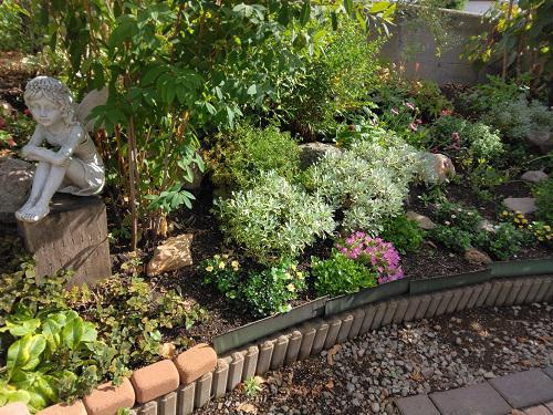 毎日暑い日が続きますが、今年の暑さは長そうですね。折角の恵みの雨も元に戻ってしまい、水やりも復活!日中の気温も30度超えが続いています。暑い中、じーじはバラの剪定など頑張っていますが、中々進みません… 老犬サスケの世話、夫婦で苦戦しています。夜泣きが始まり、処方された薬の効き目も弱く夫婦で寝不足、生活のリズムが狂ってきています。日中も手の掛かる事が多く、計画した庭仕事がそのとおりいかなくていらいらの毎日です。ブログする余裕もなくなって来ました。  今日は、今年、じーじが一番に手を加えてリノベーションした所です! 2016年頃、笹薮をじーじが手作業で土を掘り崩して造った場所です。 急な傾斜になっている中間の場所を崩してロックガーデン風にしたようです。となりのロックガーデンとつないで一体化したのですが植栽した花苗が上手く育たなくて苦戦しています。 以前は笹を植えていたところなのですがゴミ捨て場になっていた可能性があり何を植えても枯れてしまう場所があります。土壌の入れ替えも選択肢です。  ↓5/4のブログより…この頃の下の部分は以前から植栽していたところなので春の花もキレイに咲いてくれています〜♪   6/4ブログ「ブルーガーデン」で紹介しています。崩した新しい所に新苗を植栽したのですが、成長がイマイチ…今までよりは、見た目ではいい感じになって来ました。   ↓春の花も終わり、7月のはじめポットマムなど新たに、色々植栽しましたが、土が崩れないように、土留めに屋根材を活用してかさ上げしています。    ↓この時は、きれいだったアスターも今は枯れかかっています。やはり、土の条件が悪いのか…  かろうじて残っている花達です。  8/2パチリ!ここまで成長しましたが、今は花芽がありません。これからの新芽に期待です。    ガーデニングの楽しみ方にはリノベーションにもありますね。