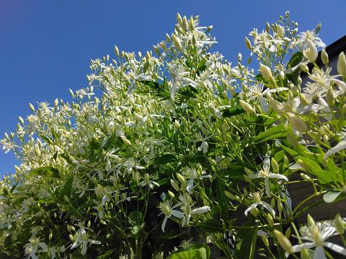 不安定な天気が続いて、降る雨の量も半端で無いです。庭は今、じーじが合間を見てバシバシ剪定中なのでいい雨かもですね。バラも思い切って切り詰めたり終わりにしたりで進んでいます。トゲのある剪定枝の始末だけ大変です。 今の時期、一番きれいに咲いてくれる(新芽)”ハツユキカズラ”毎年登場のミニガーデン風景です。 以前にも、紹介した鉢物ですが、成長しつづけています。大鉢の樹木の隙間にじーじがさし芽で増やしたハツユキカズラ。肝心の樹木は枯れたので切ってしまいました…大鉢なので豪華に見えますね〜 ↓最初はミニガーデンにいいと思い植えた”ガイラルディア グレープセンセーション”次々と花を立ち上げて咲いてくれています。やはりミニガーデンでは無理があったようで、後でこの場所、ロックガーデンへ移植したら自然にのびのびと長く咲いてくれているのでこの場所はお気に入りのようです。 ”シルフィウムモーリー”蕾もたくさん付けて、遅くまで咲き続けてくれる優秀な花です。シードヘッドも蕾のように見え、いつまでも楽しめます。他の場所に遅く植えた苗もようやく蕾を立ち上げてきているので秋の庭を飾ってくれそうです。 ↓前回、撮り漏れした”エリゲロン”ですが、あまりにも増えすぎて雑草化しています!白とピンクが混ざって長く咲いてくれるかわいい小花なのですが… 復活している”ハボタン”秋の終わりに寄せ植えしたハボタンですが他の花達が終わった後、鉢に適当に植え直ししていたら、こんなにも立派に成長していました!今年は、これをうまく使えそうですね。 最後に・・・ (トップ写真)は、青空とコラボの”仙人草”咲き始めました。 生育旺盛で手に追えずバッサリと除去したつもりの仙人草、コボレダネで生きのこっています。