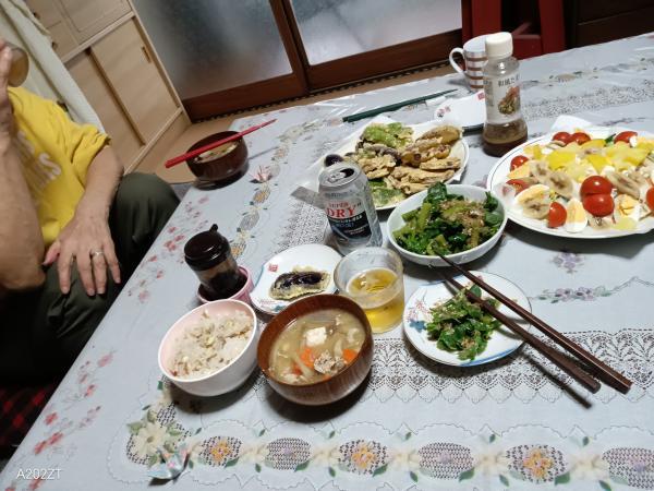 今年の栗ご飯、こないだの日曜日9月28日は月二回のギター練習日で毎回夕飯作り準備するが、この日は西吾妻山案内人クラブのガイドで西吾妻山山頂コースガイド、いつも16時集まりだが、遅くなるので・・先に夕飯準備してもらった、この日は今期初物の栗ご飯(山で採ってきたものらしい)、そうて我が家のサツマイモ、ナス、ピーマン、シシトウの天ぷら、でした、我が家の栗もどうなっているか?・・こないだ観た時はいがが割れてなかった・・移住して植えた栗、昨年初めて実をつけた、今年は雨なし、日照りで実は小さいようだ、まだ幼い木ですからこれ楽しみです・・