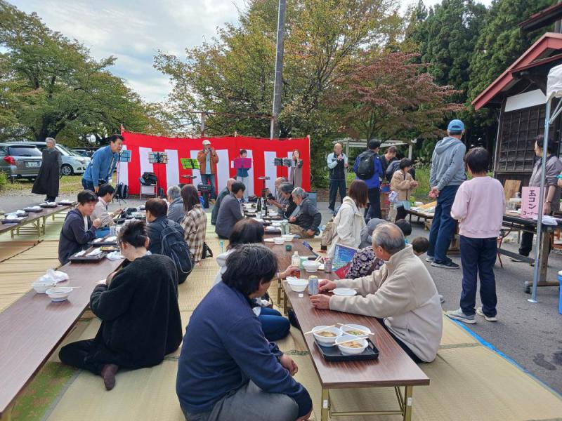 いよいよ長井線祭り当日です。今年は土曜日の開催だったので、会員の参加が少なくて、かなり大変でしたが、夫人の協力を得て何とかスタートできました。 成田駅の名物は「オカリナ演奏会」です。オカリナーズの代表の金子俊郎さんは、西根地区の縄文太鼓保存会の代表でもあります。秋の芋煮会の際に「縄文太鼓の演奏会」をしていたのですが、雨のために縄文太鼓の演奏会を中止せざるを得な年がありました。その時、金子さんがホームでオカリナを演奏してくれたのが、オカリナとの出会いでした。 その後、どのようなドラマがあったかを過去の投稿から辿ってみてください。 【2017.10.22】 → 成田駅で縄文太鼓:山形鉄道おらだの会 【2024.10.22】 → 広場にオカリナが響きます:おらだの会 【2023.10.31】 → エンディングはサライ:おらだの会